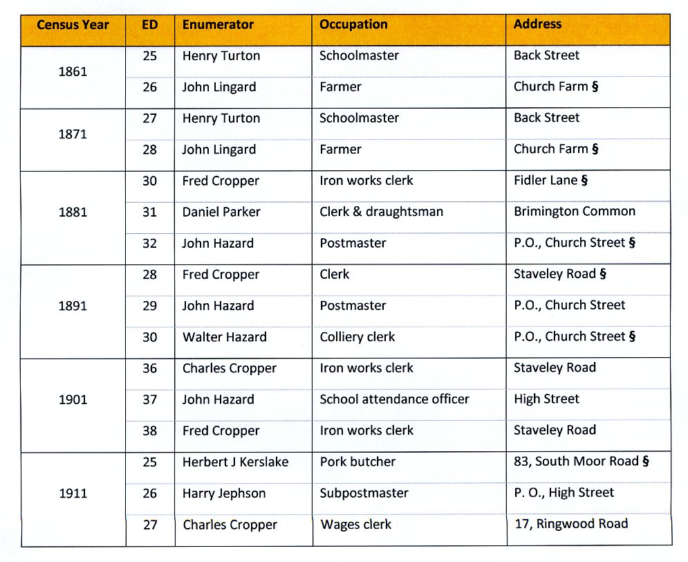 Who were the census enumerators in Brimington?