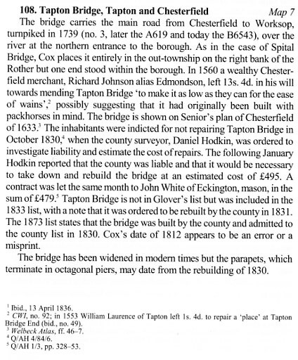 To give a flavour of the book, we’ve been able to carry an extract from its gazetteer – the entry in full for Tapton Bridge on the river Rother – below.