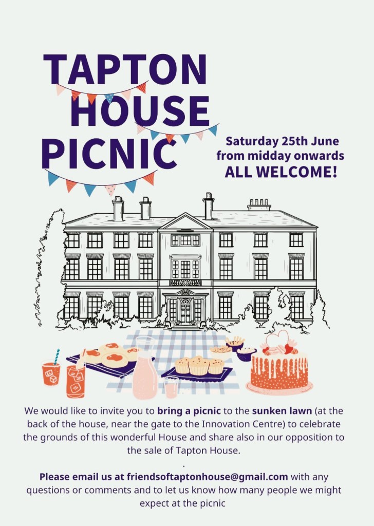 The friends are also organising a picnic at Tapton House on Saturday 25 June in order to draw attention to the sale issue. Details are below.