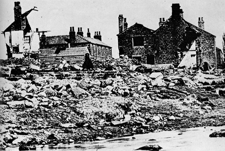 The private Sheffield Water Works Company had nearly competed their Dale Dike Reservoir, near Bradfield, which held around 691,000,000 gallons. Undertaking an inspection in the afternoon of Friday 11 March 1864, the resident engineer noticed that the reservoir’s water was being blown by wind straight up to and over its embankment. He remained unconcerned. Later, though, the situation had worsened. A water company employee whilst crossing the embankment saw a crack in its side. That evening the crack was examined and the incident heightened – with residents in nearby Lower Bradfield being advised of the danger. Later it appears that villagers were actually evacuating.