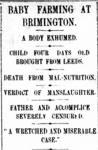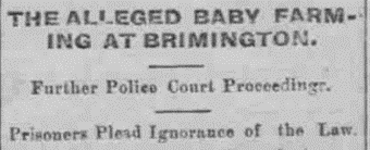 Just before the revelations of this baby farm case in Brimington a woman, Amelia Hobley, was hanged in June 1896 for killing a baby, Doris Marmon.