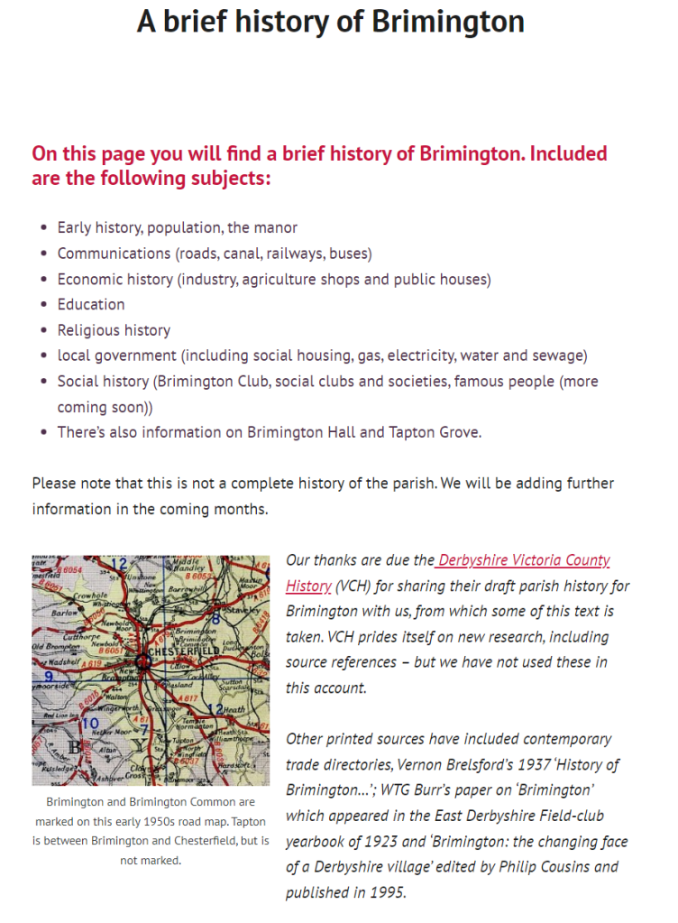 We are a small group of local people interested in the history of Brimington and Tapton. These two communities are part of the Borough of Chesterfield.