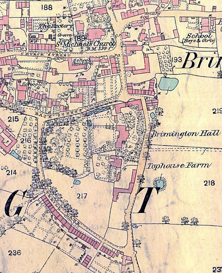 The Brimington family presumably lived in the village between the 12th and early 14th centuries. This may have been in a house on the site of the now demolished Brimington Hall (on Hall Road, in the centre of the village – see below). After the manor passed to the senior line of the Breton family the hall would presumably have been let. The house was sold in 1633 as part of the Foljambe family’s property sales. Thereafter it has a separate history to that of the manor.